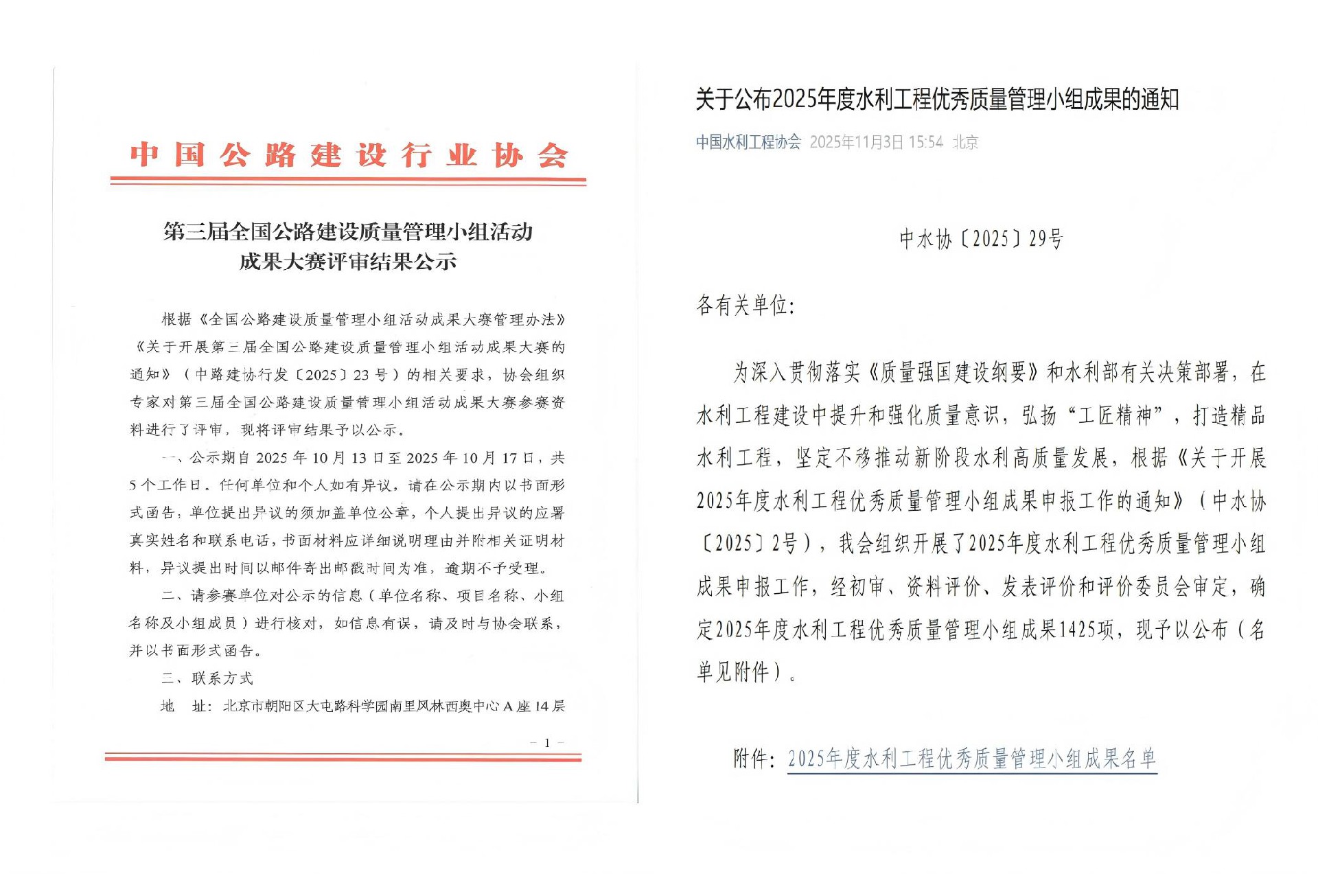 近日,中國公路建設行業協會、中國水利工程協會先后公布了第三屆全國公路建設質量管理小組活動成···